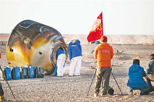 11月14日,载着神舟二十号航天员乘组的神舟二十一号载人飞船返回舱在东风着陆场成功着陆。新华社记者 李志鹏 摄