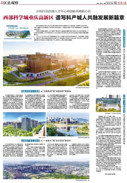 西部科学城重庆高新区 谱写科产城人共融发展新篇章