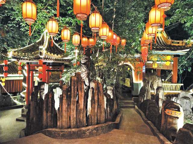 近日,餐厅员工正在布置足球主题的装饰——“渝超”沙坪坝的主场嘉陵足球场就在附近。“园子很大,能放下六七十张桌子,我们就想办法丰富各种餐饮业态。从最初的火锅到后来的柴火鸡、烤全羊,傍晚还有汉服表演……营造了家庭聚餐、单位团建、主题沙龙活动等多个消费场景,我们想给顾客带来更好的就餐体验。”甘铠玮说,现在周边居民请客、团建大多首选柑栀坊,“不仅是味道,还有良好的服务和氛围感。”