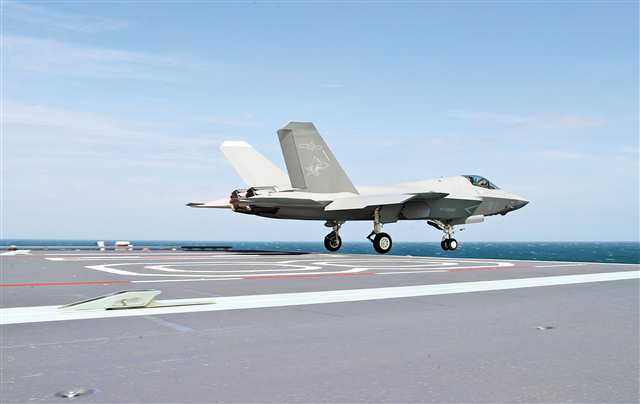 日前,海军福建舰开展入列后首次海上实兵训练。这是歼-35舰载机弹射起飞。