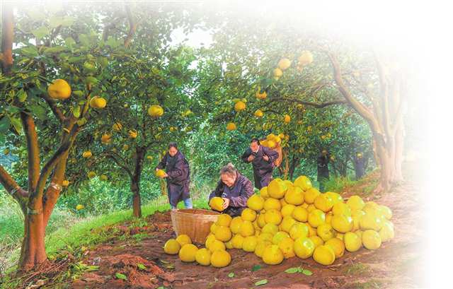梁平区合兴街道龙滩村,村民采摘梁平柚 摄/熊伟 |
