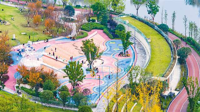全园划分为都市活力谷、阳光水岸、运动水岸三大功能区,精心布置了湿地花园、儿童趣味谷、乐水驳岸、花石草阶等八大主题景点,串联起丰富的游园体验。