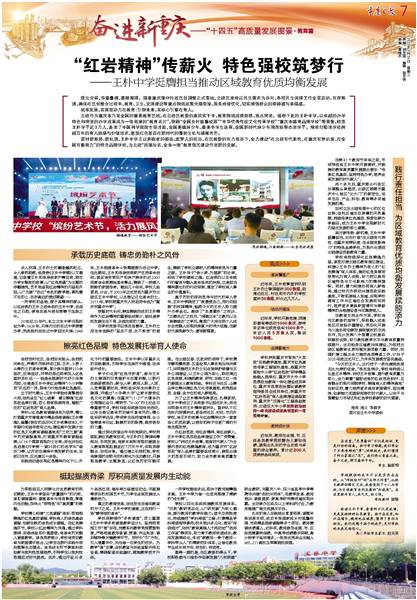 立于时代潮头,王朴中学始终高擎信仰火炬,依托全区“红心碚聚 缙云铸魂”红岩思政品牌打造,匠心培育独具特色、辐射广泛的“红岩思政”育人品牌。