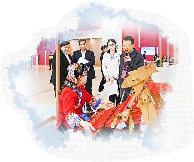 11月27日,重庆悦来国际会议中心,嘉宾们正在多彩非遗精品展上参观体验。记者 齐岚森 摄/视觉重庆 |