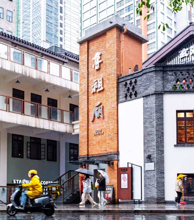 经过几年的改造,今年1月,鲁祖庙传统风貌区正式开街,陆续吸引了一批文创空间、特色餐饮、日咖夜酒等新业态进驻,一些国际国内知名品牌也以“首店”的形式落地于此。这使其一跃成为市民和游客打卡解放碑商圈的新地标。