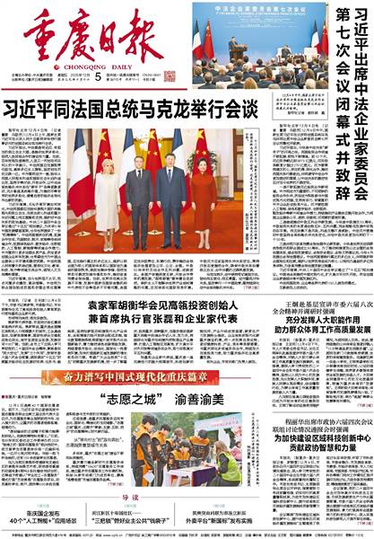 习近平强调,无论外部环境如何变化,中法两国都应当始终展现大国的战略眼光和独立自主,在彼此核心利益和重大关切问题上相互理解和支持,维护好中法关系的政治基础。中共二十届四中全会审议通过“十五五”规划建议,为未来5年中国发展擘画蓝图,也向世界提供了一份“机遇清单”。中法两国要抓住机遇,拓展合作空间,巩固航空、航天、核能等传统领域合作,挖掘绿色经济、数字经济、生物医药、人工智能、新能源等领域合作潜力。中方愿进口更多法国优质产品,欢迎更多法国企业来华发展,也希望法方为中国企业提供公平环境和稳定预期。中法两国人民有着天然亲近感,要深化文化、教育、科技、地方等领域交流合作,续写人文交流精彩篇章。