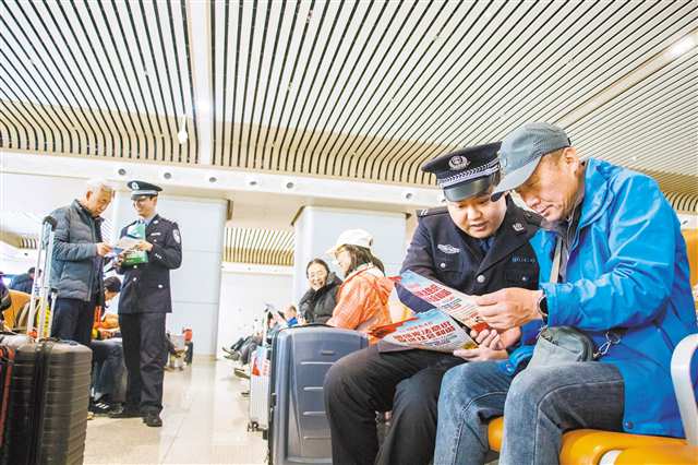 12月3日,在第十二个国家宪法日到来之际,铁路公安和长航公安民警在巫山站站前广场、候车室等地,向旅客宣讲宪法知识及防范电信网络诈骗相关要点,引导大家尊法学法守法用法。