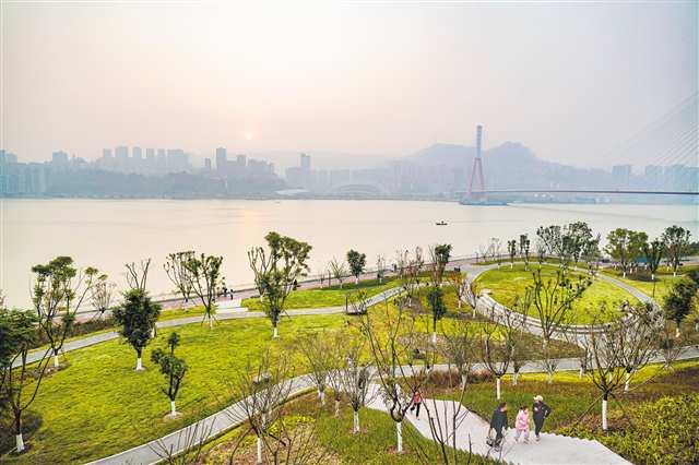 设计的前瞻性很快变成江滩的活力。前年春天,江水褪去后露出大片沙滩,孩子们赤脚在沙滩玩耍,这片充满生机的空间被网友亲切地称为“渝尔代夫九龙坡分夫”。这种顺应自然节律的巧思,让公园成为一幅四季流转的画卷。