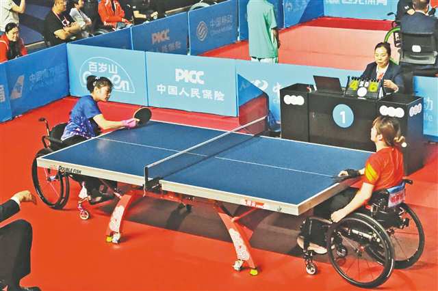 图为重庆队的陈洪(左)在乒乓球女子团体TT1-2级决赛中。(市残联供图) |