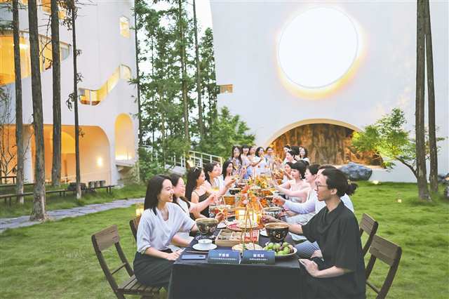 巴南区安澜镇五通村的仙那度·重重山民宿正在争创全国甲级民宿,主理人谢勇斌的“打法”与史昊杰相同:与网红达人进行资源置换,与携程等头部平台合作推流等。跨界合作则成为他的另一招妙棋:在全国招募艺术家驻地,艺术家出圈的作品为民宿带来了一波流量;与新能源汽车品牌合作的团建活动,单次带来近百个潜在客户;与调酒师进行合作,让客人用故事换酒,增强其横向联系和品牌黏度。