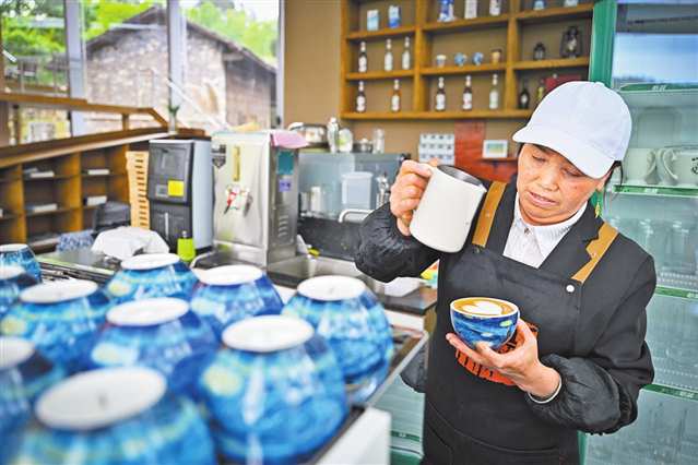 武隆仙女山荆竹村归原小镇一家民宿里,村民在学习制作咖啡。记者 张春晓 摄/视觉重庆 |