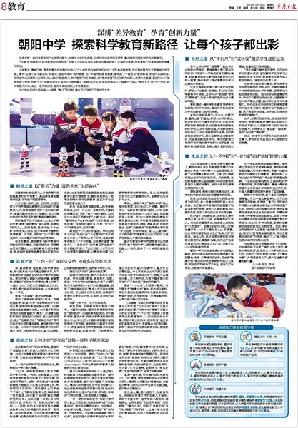 “三色课程”实现了科学素养的全员奠基与个性发展,“三大平台”提供了分层分类的实践支撑,“三种方式”链接了丰富多元的社会资源,“一个计划”则确保了有潜质学生的贯通培育……面对宏大时代命题,朝阳中学主动思考、因地制宜,通过系统的课程顶层设计、资源整合与机制创新,展现了基层学校在落实国家战略、塑造教育生态中的积极性与创造性。