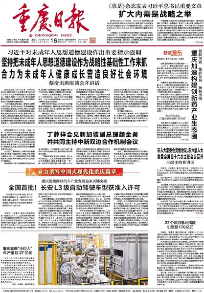 扩大内需是战略之举坚持把未成年人思想道德建设作为战略性基础性工作来抓 合力为未成年人健康成长营造良好社会环境重庆加速构建创新药产业生态圈丁薛祥会见新加坡副总理颜金勇并共同主持中新双边合作机制会议市人大常委会党组会议、市六届人大常委会第四十六次主任会议召开全国首批!长安L3级自动驾驶车型获准入许可22个项目落地涪陵 引资超170亿元重庆轮毂“小巨人”年产值超27亿元