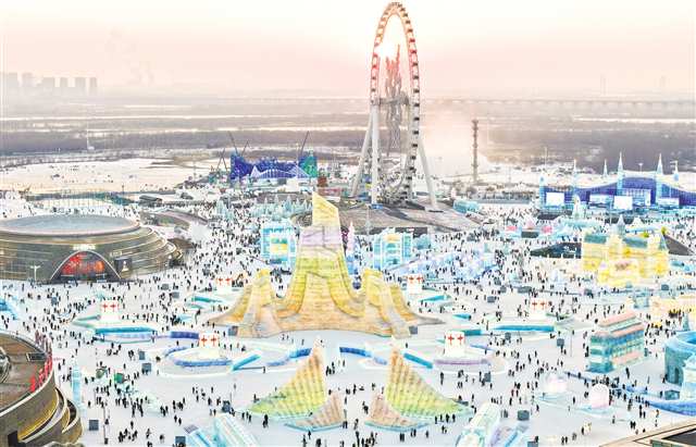 12月17日上午10时,第二十七届哈尔滨冰雪大世界正式开园迎客。园区占地面积达120万平方米,总用冰用雪量突破40万立方米,以历届之最的宏大体量,打造一座“冰天雪地”“童话世界”。(新华社发)