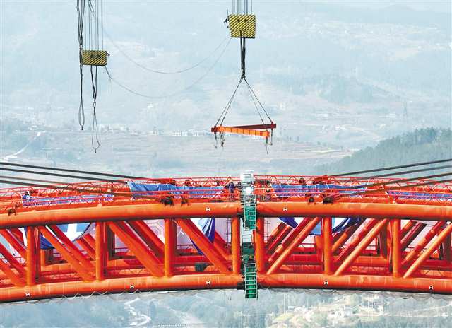 2023年3月17日,双堡特大桥迎来激动人心的一刻:主拱合龙!(本报资料图片)记者 罗斌 摄/视觉重庆 |