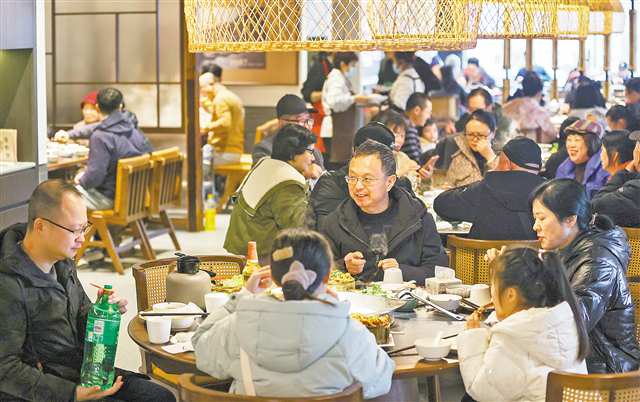 12月21日,渝中区山城羊肉馆,店内坐满了享用羊肉的市民。