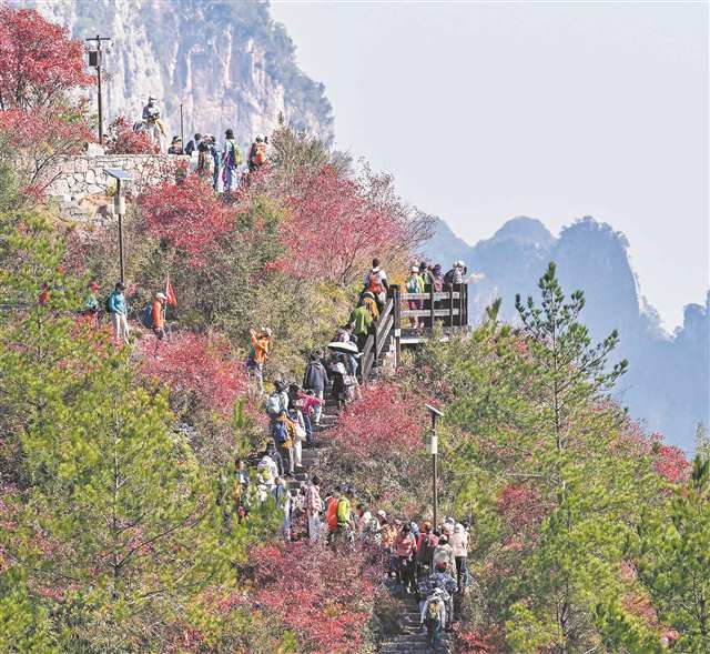 11月29日,巫山县巫峡神女景区,众多游客在红叶相伴的步道上徒步观景。记者 张锦辉 摄/视觉重庆 |