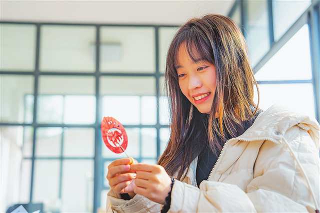 巫山县双龙镇安静村,村民展示用红叶制作的叶雕作品。通讯员 熊威 摄/视觉重庆 |