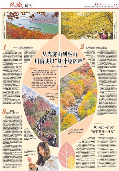 一片红叶,如今正成为串联巴蜀文旅产业协同发展的天然纽带。这片跨越省界的亮色,或许能描绘出巴蜀文旅走廊一道别样的风景线。