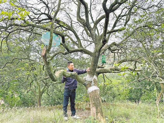 罗小中正在查看百年枳壳树的状况。记者 张亦筑 摄/视觉重庆 |