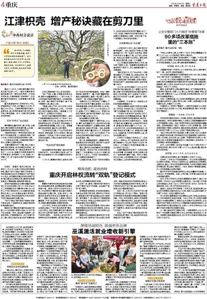 “《江津县志》记载,广兴出产的枳壳气味浓烈、药效显著,作为大宗药材,清代就远销海外。”刘茂说,只有代代相传,保护好这些优良基因,才能让当地的枳壳产业发展生生不息。