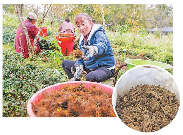 烘干脱泥后,黄连就可以进入市场。徐进平共种植了70多亩黄连,“今年可采收七八亩,亩产500斤,算下来能卖60万元左右。”徐进平笑着说。