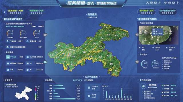 西部陆海新通道建设中,气象保障提质增效——气象联合公安、交通运输等7部门印发《重庆市西部陆海新通道建设气象保障行动方案(2023—2027年)》,建成西部陆海新通道、共建“一带一路”和长江经济带智慧气象服务系统,面向72个单位开展精细化交通气象服务,全面提升“铁公水空”多式联运保障能力。