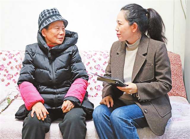 巴南区鱼洞街道,党员志愿者封丽入户向老人宣传相关政策、提供帮助。 |