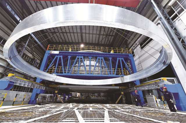 西南铝锻造的直径10米世界级整体铝合金锻环 摄/李影 |