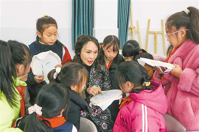 近日,巫溪县先锋小学,唐丽娟为孩子们讲解挑花技法。记者 尹诗语 摄\视觉重庆 |