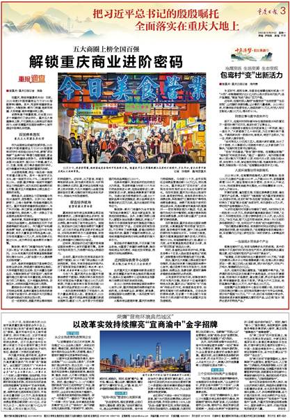 该榜单基于海量数据,对全国3000多个商圈进行了综合评价。重庆五大商圈集体上榜,不仅展现出山城商业的强劲活力,也标志着重庆在国际消费中心城市建设中取得扎实进展。