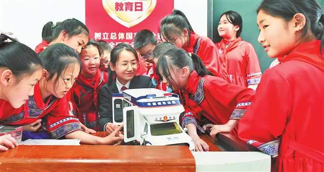 云阳县清水土家族乡,县人民法院青年干警利用车载便民法庭向学生开展法治宣传教育。(资料图片)通讯员 侯小霞 饶国君 摄/视觉重庆