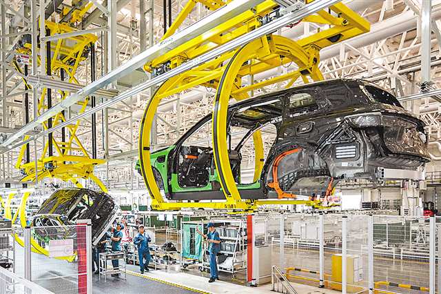 11月4日,两江新区赛力斯超级工厂,车身被自动化设备吊入总装线。记者 李雨恒 摄/视觉重庆 |