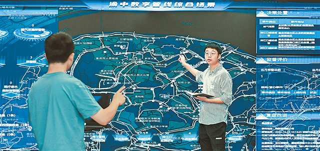 6月19日,渝中区大数据局,工程师在数字管线综合场景后台精确管线点位。记者 张锦辉 摄/视觉重庆 |