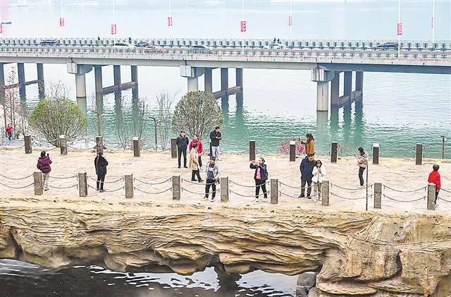 据了解,“石琴响雪”景点原位于长江支流苎溪河的天生桥处,三峡工程建成后被水浸没。随着北滨公园的建设和开放,该景点重回人们的视野。