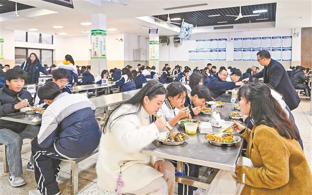 一组数据见证改变:铜梁区公办中小学100%实现食堂自主、非盈利经营,100%实行全品类食材统一采购,100%推行师生同餐,确保食堂安全平稳运营。2025年以来,该区公办中小学膳食监督家长委员会成员、家长代表进校陪餐2400余人次,食堂满意度调查综合满意度达99.17%,较2024年提升2.45个百分点,创历史新高。