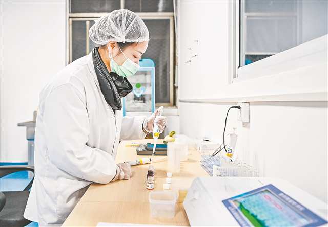 物理上的挑剔,需要科学的支撑。与分拣区一墙之隔,化验员鲜庆兰套上一次性手套,正在对每一样蔬菜进行快检和留样。只见她从刚送达的一筐青椒中随机取出两个,在专用的砧板上切下一小角,放入试管,加入农药残留检测试剂,拿到检测机里检验……她的双眼紧盯检测仪屏幕上跳动的读数。