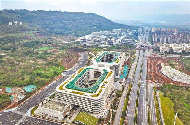 西部(重庆)科学城重点项目——科学谷数智科创园二期近日完工,标志着历时5年建设的科学谷完工。(无人机照片)