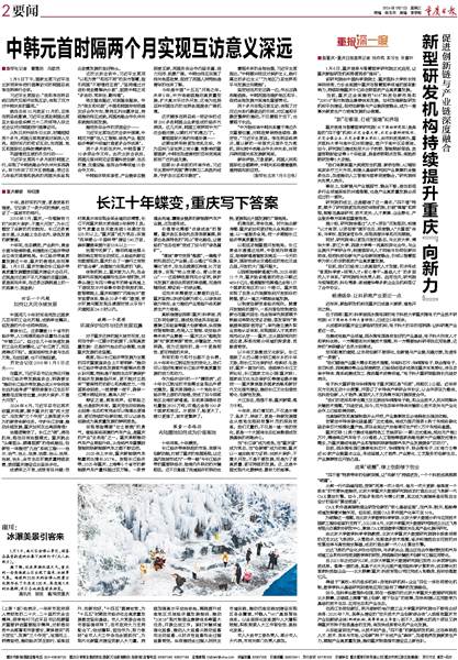 中韩元首时隔两个月实现互访意义深远新型研发机构持续提升重庆“向新力”长江十年蝶变,重庆写下答案冰瀑美景引客来市政府就政府工作报告征求市人大常委会意见