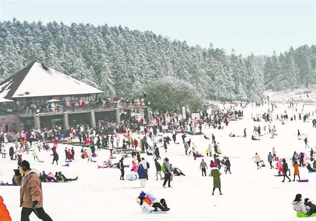 “往年冬天,游客多是来看雪、拍照,停留时间不长。今年不一样,很多人是专门来玩雪的!”仙女山国家森林公园相关负责人介绍,仙女山国家级森林公园平均海拔1900米,每年冬季有较长的积雪期。2025年12月31日,仙女山迎来大范围降雪,“仙女山下雪了”等网络话题热度持续走高,为冰雪季带来第一波流量。