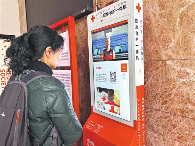 市民通过应急救护一体机了解救护知识。 |