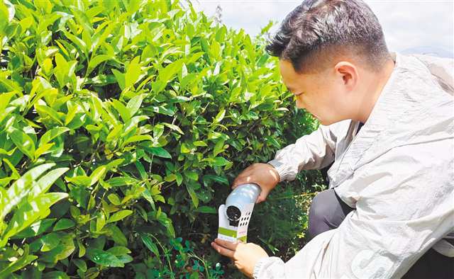 工作人员在茶园释放天敌昆虫。(除署名外均由受访者供图) |