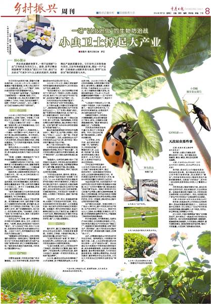 在农业生产中,柑橘、茶叶、果蔬等经济作物中的红蜘蛛、蓟马,玉米、水稻中的螟虫、飞虱等,都是让种植者防不胜防的“害虫”。在“以虫治虫”方面,早在1700年前,我国就有用蚂蚁防治柑橘害虫的记载。上世纪70年代,用赤眼蜂防治玉米螟的技术还曾走出国门。