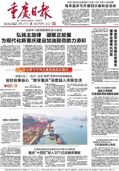 袁家军在讲话中代表市委、市政府和全市人民,感谢中央驻渝新闻机构和市属媒体对现代化新重庆建设作出的重要贡献。他指出,2025年是很不平凡的一年。全市上下深入学习贯彻习近平总书记视察重庆重要讲话重要指示精神,聚焦做实“两大定位”、发挥“三个作用”,统筹做好高质量发展、高品质生活、高效能治理各项工作,推动经济向上向好、社会大局和谐稳定,现代化新重庆建设迈出新的坚实步伐。中央驻渝新闻机构和市属媒体聚焦重大主题,全面展现重庆牢记习近平总书记殷殷嘱托狠抓落实的政治自觉、推动高质量发展的实干担当、纵深推进改革开放的创新实践、办好民生实事的实干作风、推进超大城市现代化治理的先行探索、筑牢长江上游重要生态屏障的坚定行动、建设新时代文化旅游强市的丰硕成果,为现代化新重庆建设营造了良好舆论氛围。