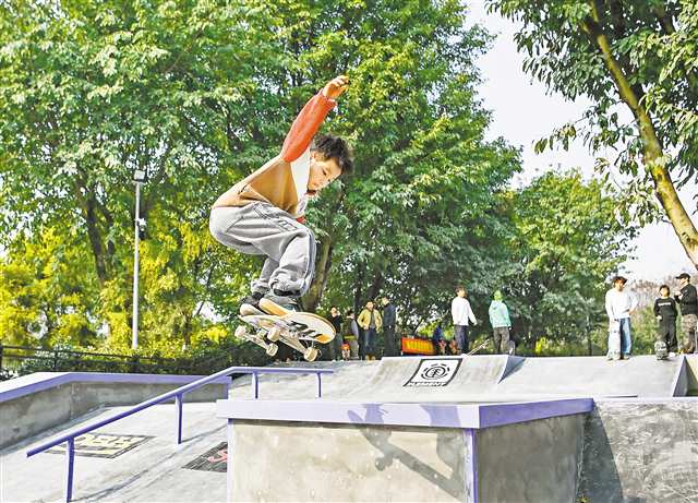 据了解,该公园总面积约2000平方米,总投资450万元,设有碗池和街式两大区域,包括过渡曲面、火山台、金字塔台等多样场景,能满足中高阶腾空、抓板等日常训练需求,还可承办国家级滑板赛事。这里也是目前重庆规模最大的专业滑板运动公园,将成为重庆市滑板运动的训练中心,为征战全运会、亚运会的运动员提供专业的场地保障。