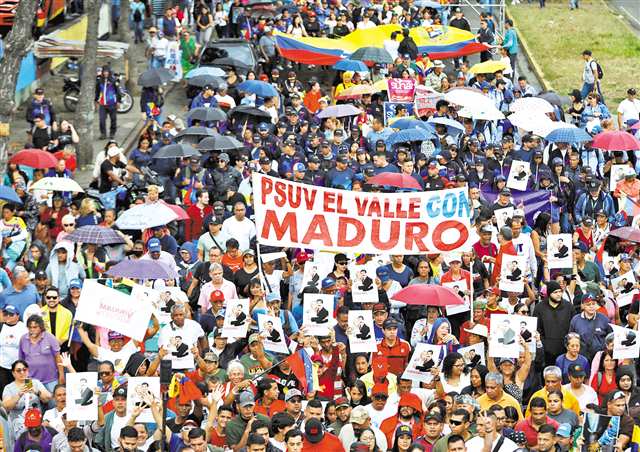 1月10日,民众在委内瑞拉首都加拉加斯参加游行集会,呼吁捍卫国家主权,要求美国释放委总统马杜罗及其夫人弗洛雷斯。
