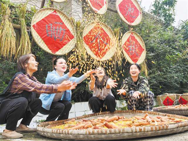 巴南区东温泉镇鱼池村,村民在手搓玉米趣味运动会中体验农耕文化。(资料图片)特约摄影 李攀 摄/视觉重庆 |