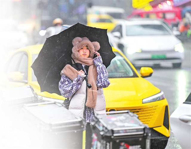 1月19日,两江新区观音桥,市民在雨中等车。当日,受强冷空气影响,我市迎来今年最强寒潮。记者 崔力 摄/视觉重庆 |