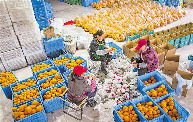 1月20日,北碚区大盛镇青龙村,村民正在分装柑橘。