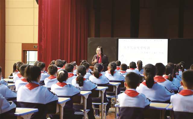 浙江师范大学教授陈琴与秀山县东风路小学四年级学生同上“学思课堂” 摄/朱良龙 |